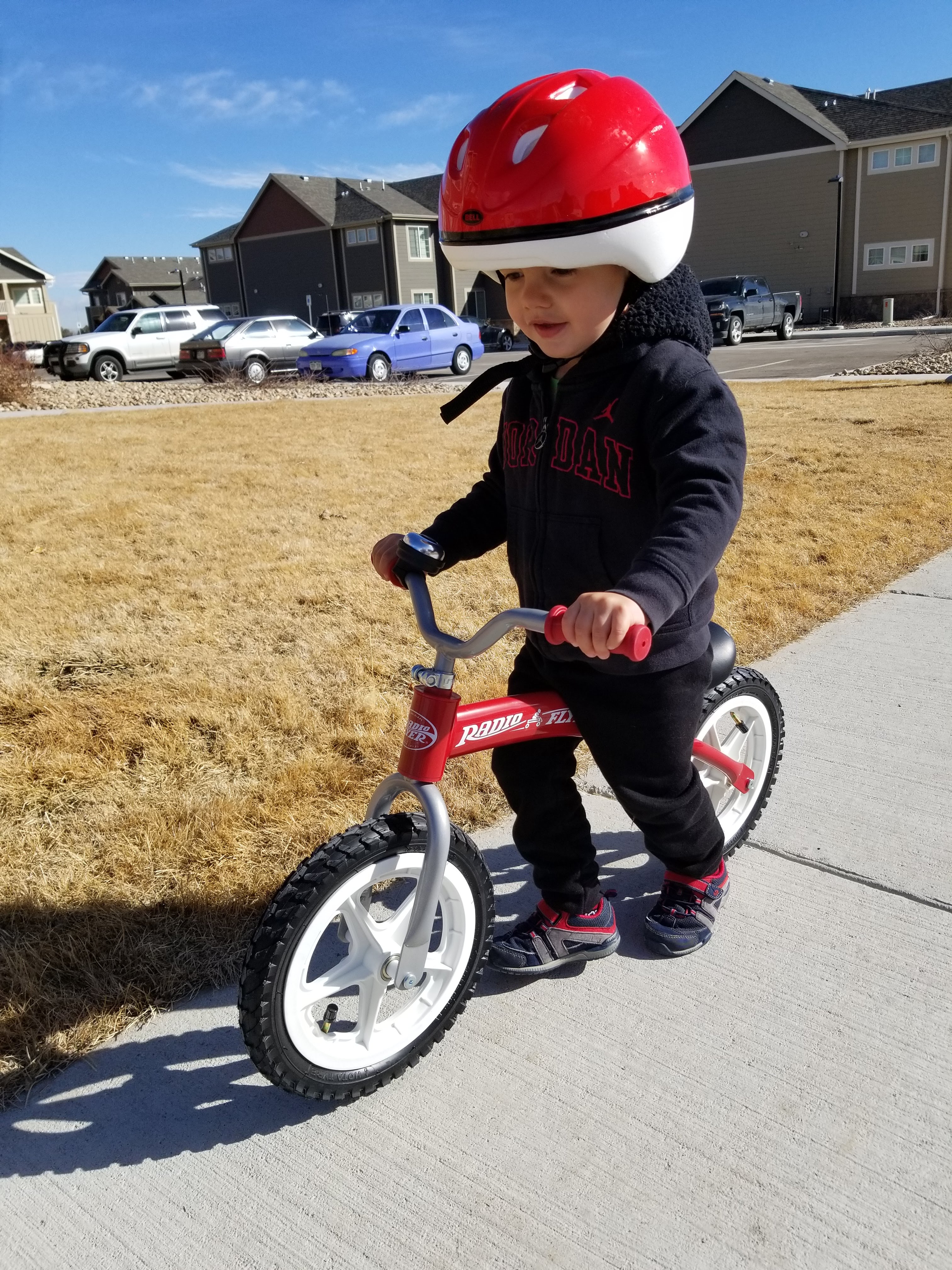 I think it’s the first cone he’s ever had (can you believe that Pops?!?). He was pretty amazed to find that you can eat the CONE too. We’re still working on the stryder bike skills. For now, he walks very slowly with the bike between his legs. It took us a loooong time to make it the 5 blocks to the park, but he didn’t mind. Whenever we’re in the garage he says “red bike. My red bike.”