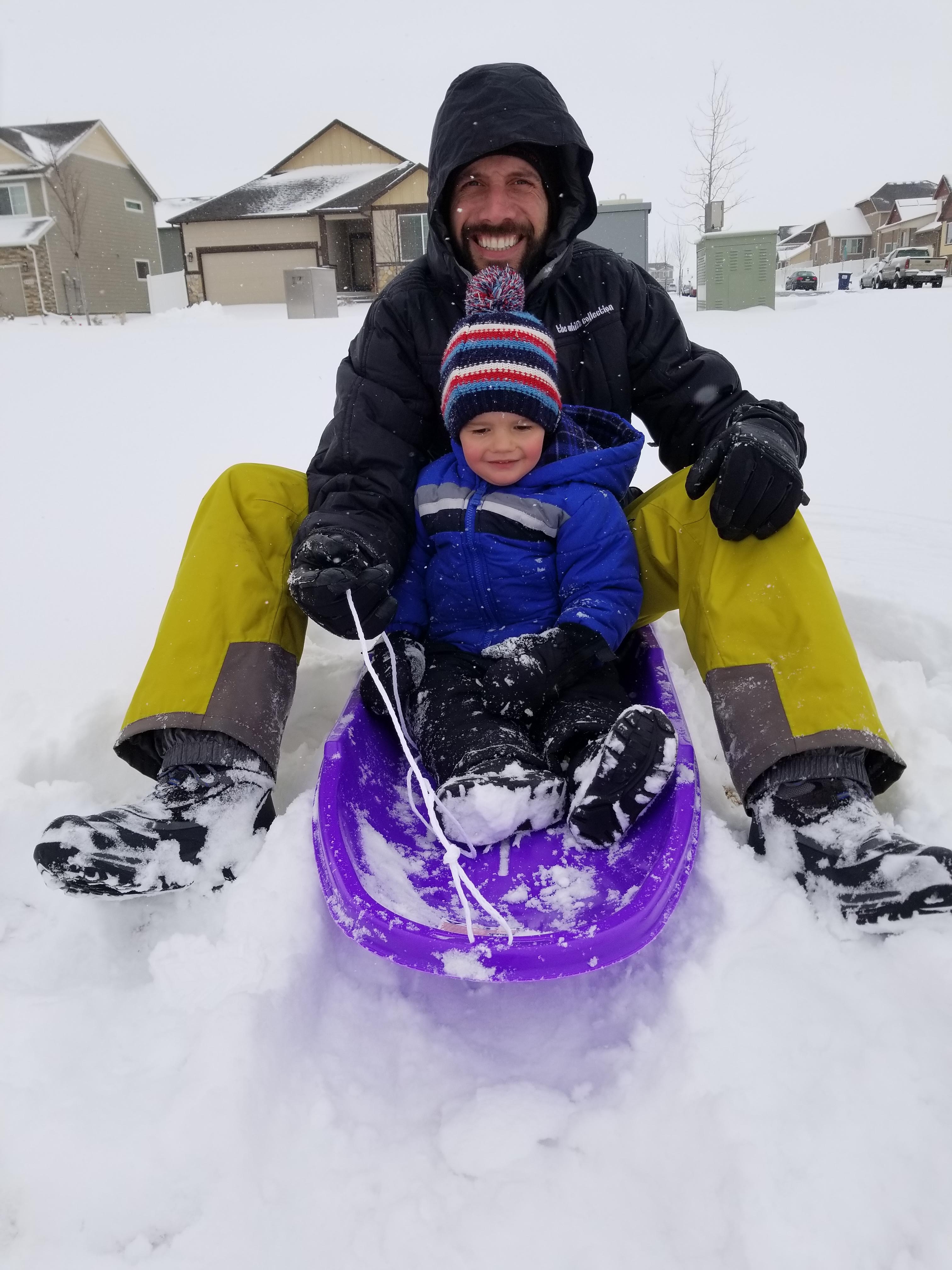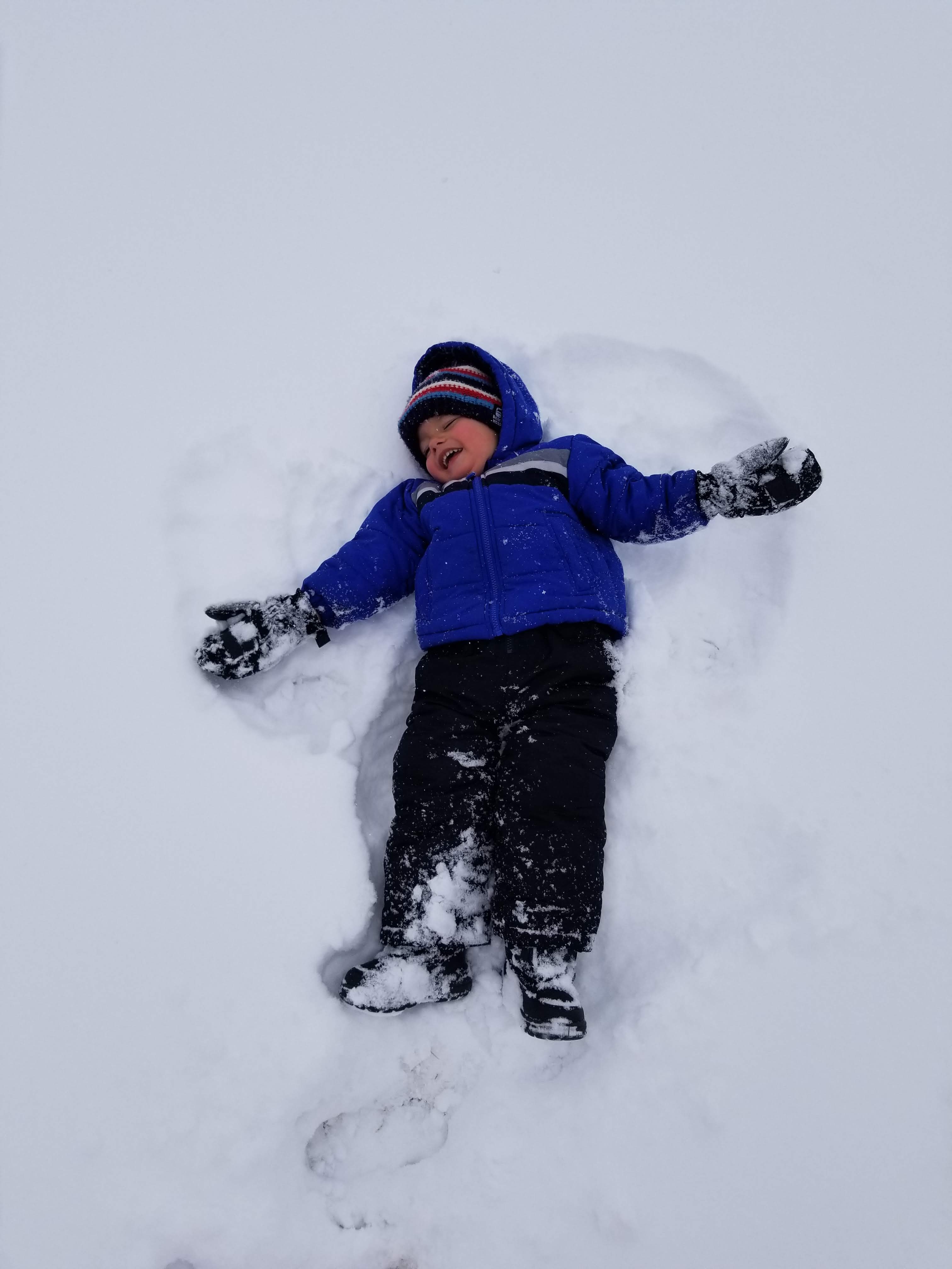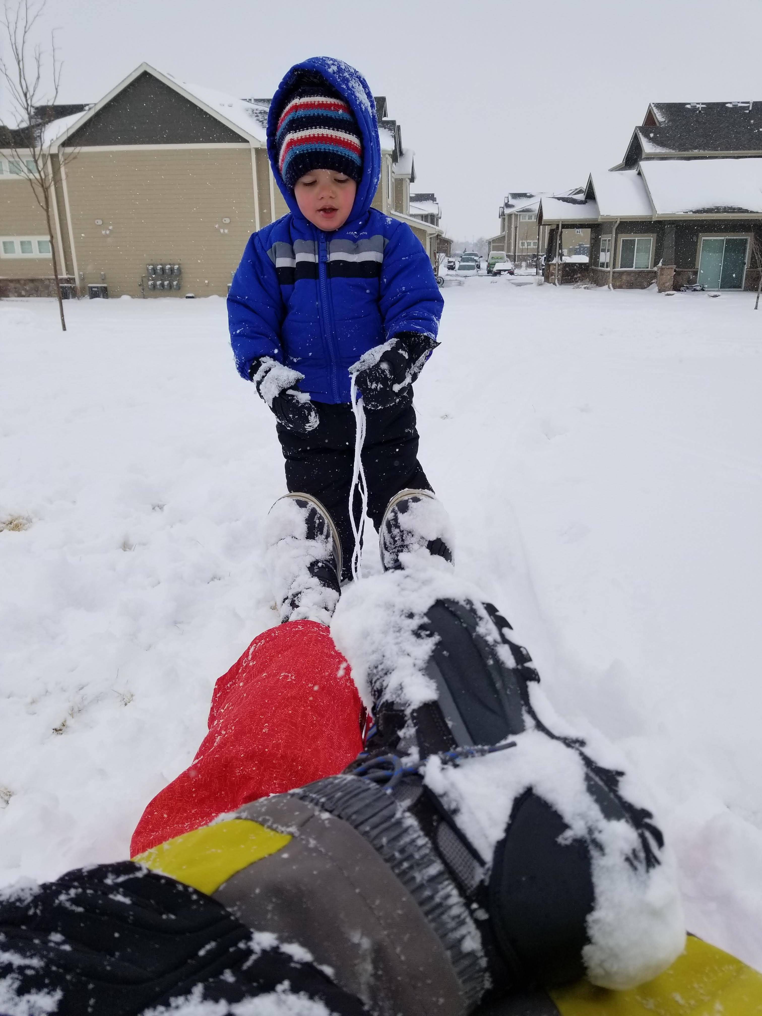On Saturday, we had 5 inches of snow! It was bitter cold, but we took the 30 minutes it takes to dress a toddler for the snow and went on an adventure around the neighborhood. The goal was sledding, but Colton had other plans. Most of the time, he decided the sled was a pony and kept feeding it snowballs and pulling it along the path saying “Giddy up horsey!” Dad taught Colton how to make snow angels, and we eventually coaxed a few sled rides out of the pony owner, Colton. We thawed out with apple cider and stayed inside for the rest of the weekend. BRRRRRR!